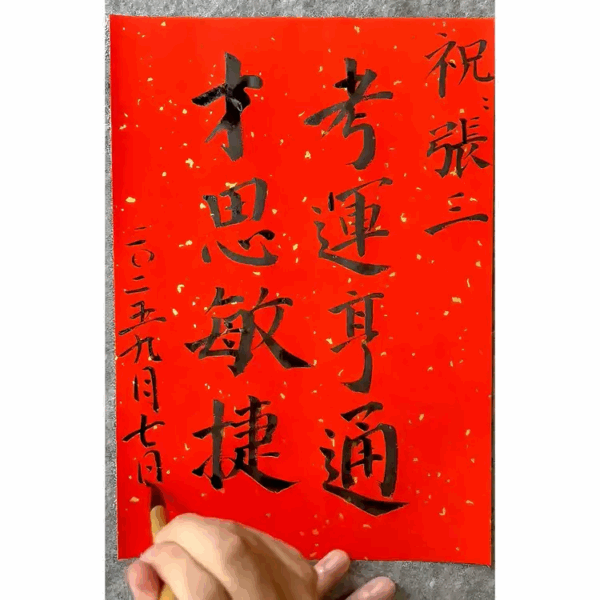 A video file of the calligrapher writing the blessings, sent digitally